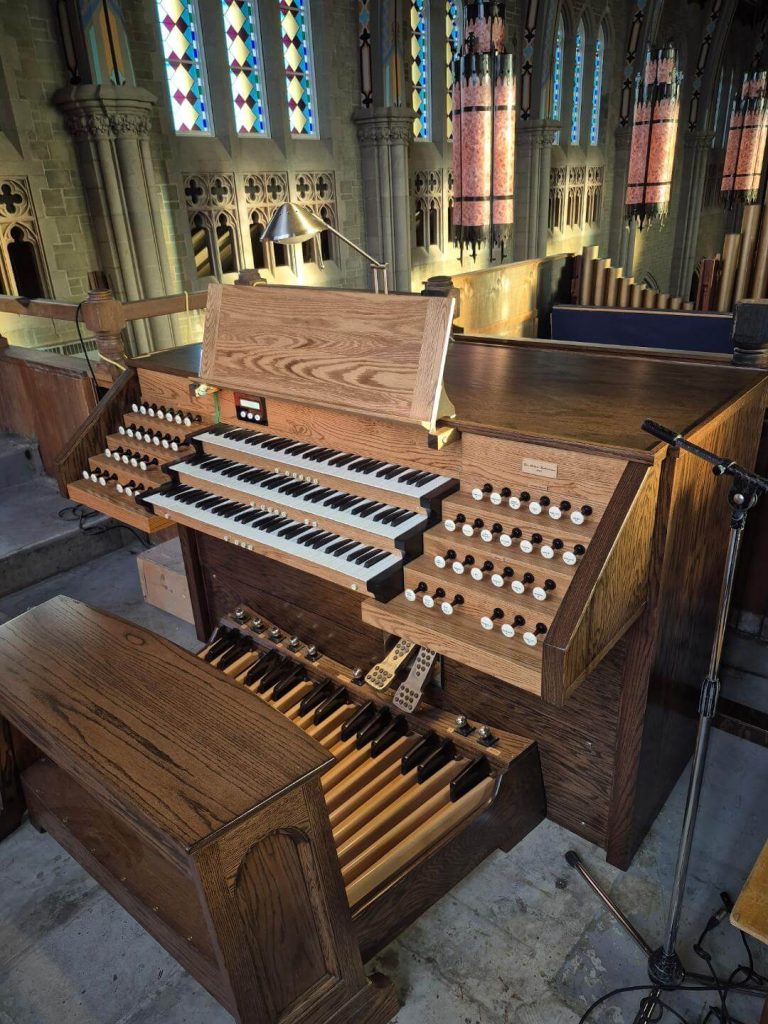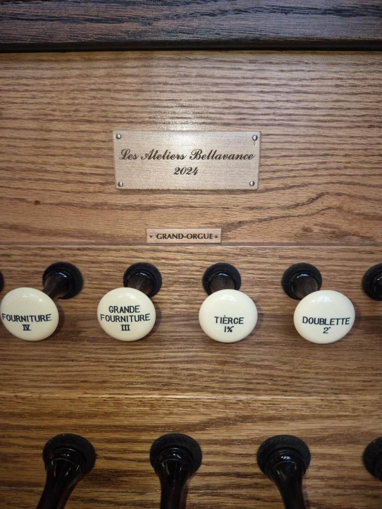 Installé dans la Chapelle de la Résidence de La Salle de Ste-Dorothée, Laval, l’instrument accompagne tous les jours la célébration communautaire des Laudes et de la Messe. Orgue Bellavance 2024, traction mécanique, 5 jeux : Principal 8*, Bourdon 8, Flûte 4, Quinte 2 2/3*, Doublette 2 + Basse 8** ; Buffet en merisier ; clavier en ébène et bois de rose